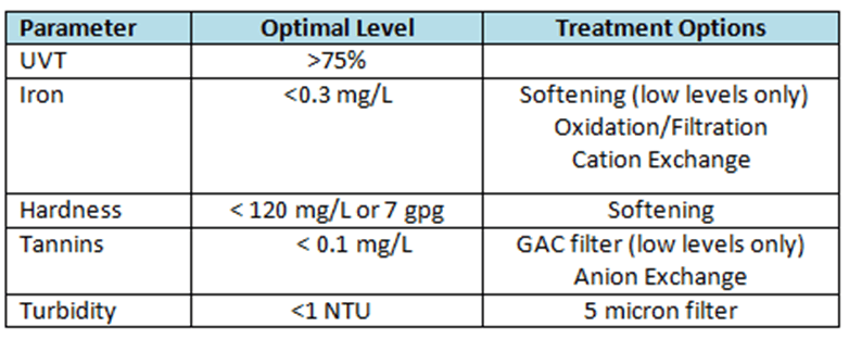Pre-treatment is a critical part of effective disinfection with ultraviolet light. Manufacturer specifications and water testing results should always dictate your approach to designing the full water treatment system, however, some guidelines follow: